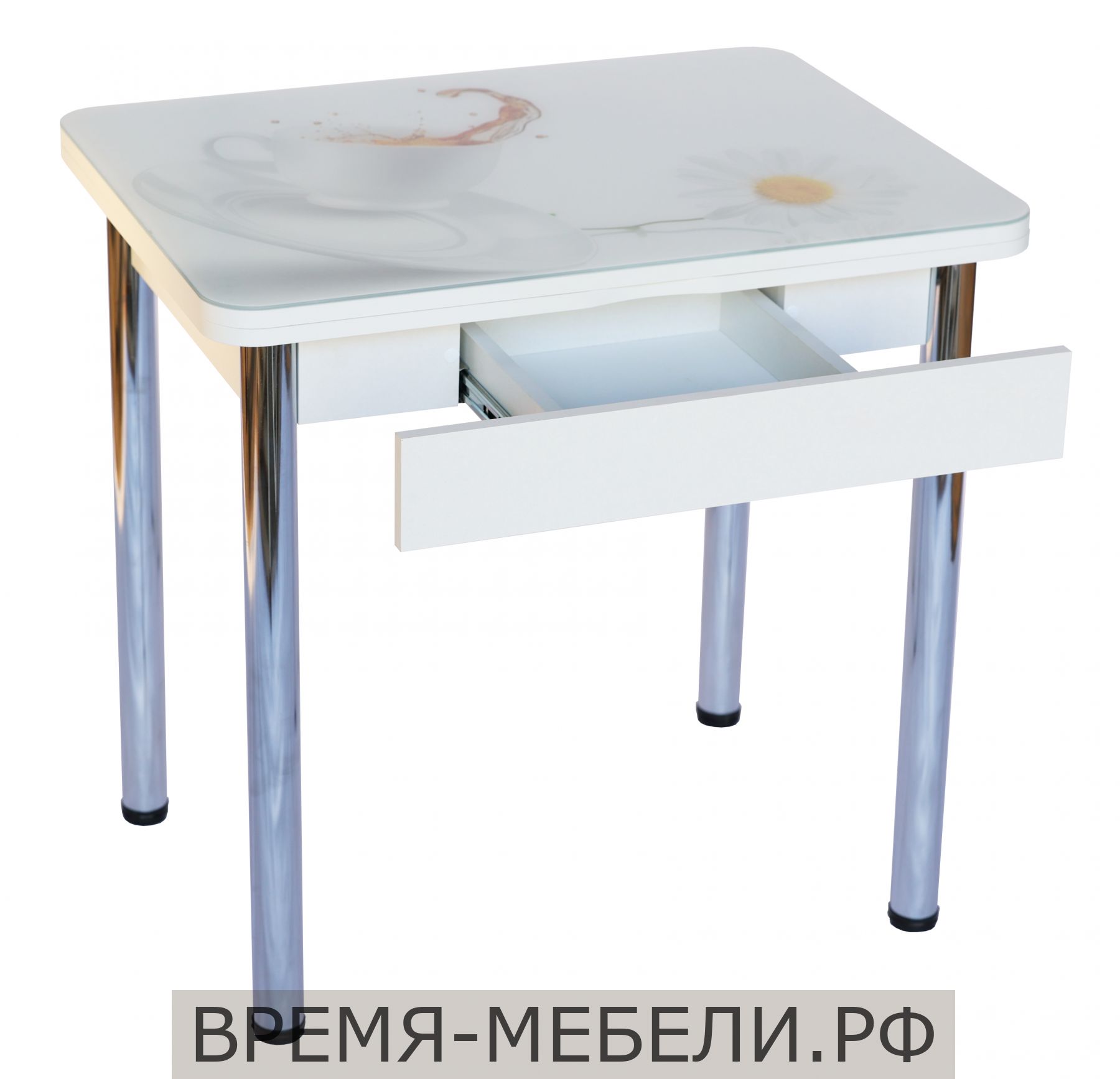 Фотопечать. Основа ЛДСП: металлик, венге, белый, шимо темный, крем. Ноги прямые: черные матовые, белые матовые, бежевые, металлик, хром. Ноги прямые с утонением: черные матовые, белые матовые, бежевые, металлик. Размер столешницы:80/120 х 60 см.